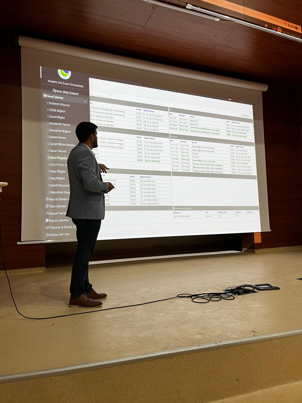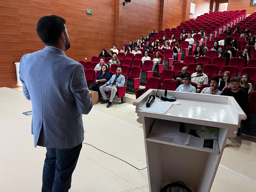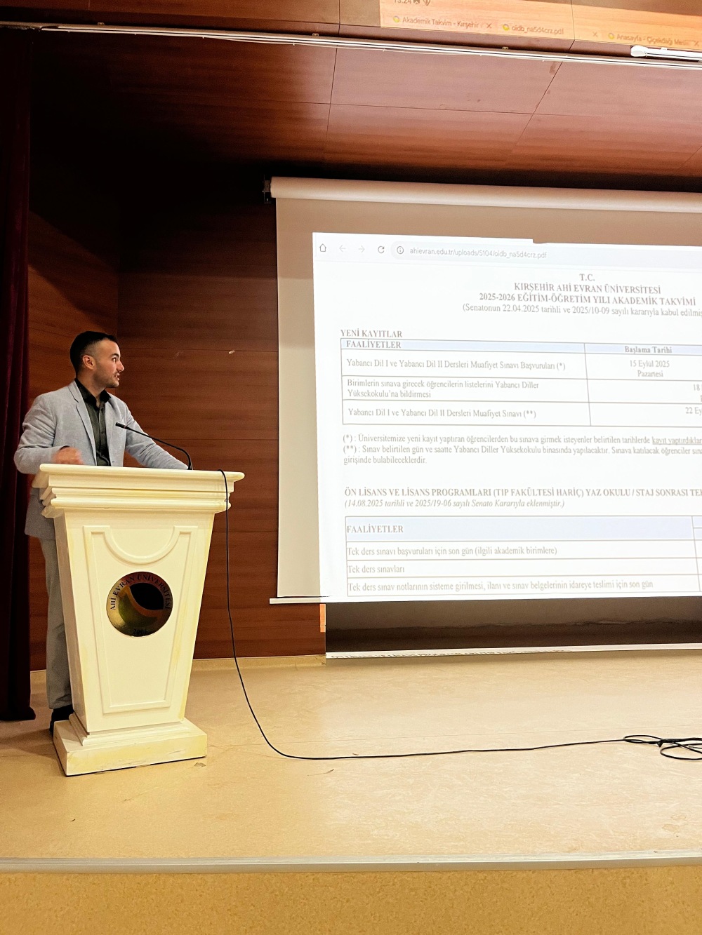 Programda Öğr. Gör. İbrahim MAYDA öğrencilere Yüksekokulumuzun ve Veterinerlik Bölümü'nün misyonu, vizyonu ve fiziki altyapısı hakkında bilgi verirken Veterinerlik Bölüm Başkanı Dr. Öğr. Üyesi Taylan AKTAŞ ise üniversitemizde uygulanmakta olan kalite süreçleri hakkında bilgilendirme gerçekleştirdi. Sunumda, öğrencilere iki yıllık eğitim süresince alacakları dersler, uygulamalı eğitimlerin önemi, laboratuvar olanakları, staj süreçleri ve mezuniyet sonrası kariyer fırsatları detaylı bir şekilde aktarıldı. Ayrıca, bölümün diğer akademik personeli de kendilerini tanıtarak öğrencilerin akademik danışmanlık süreçleri hakkında bilgi verdi.